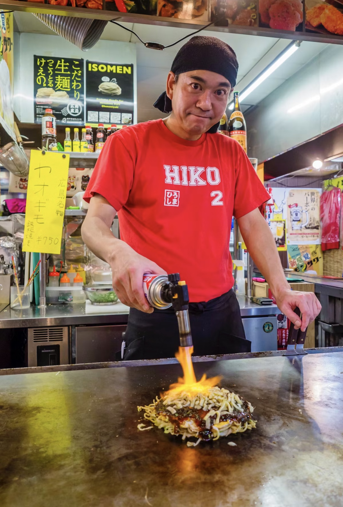 곧바로 **오코노미야키(일본식 부침개)** 가게로 향했어요.