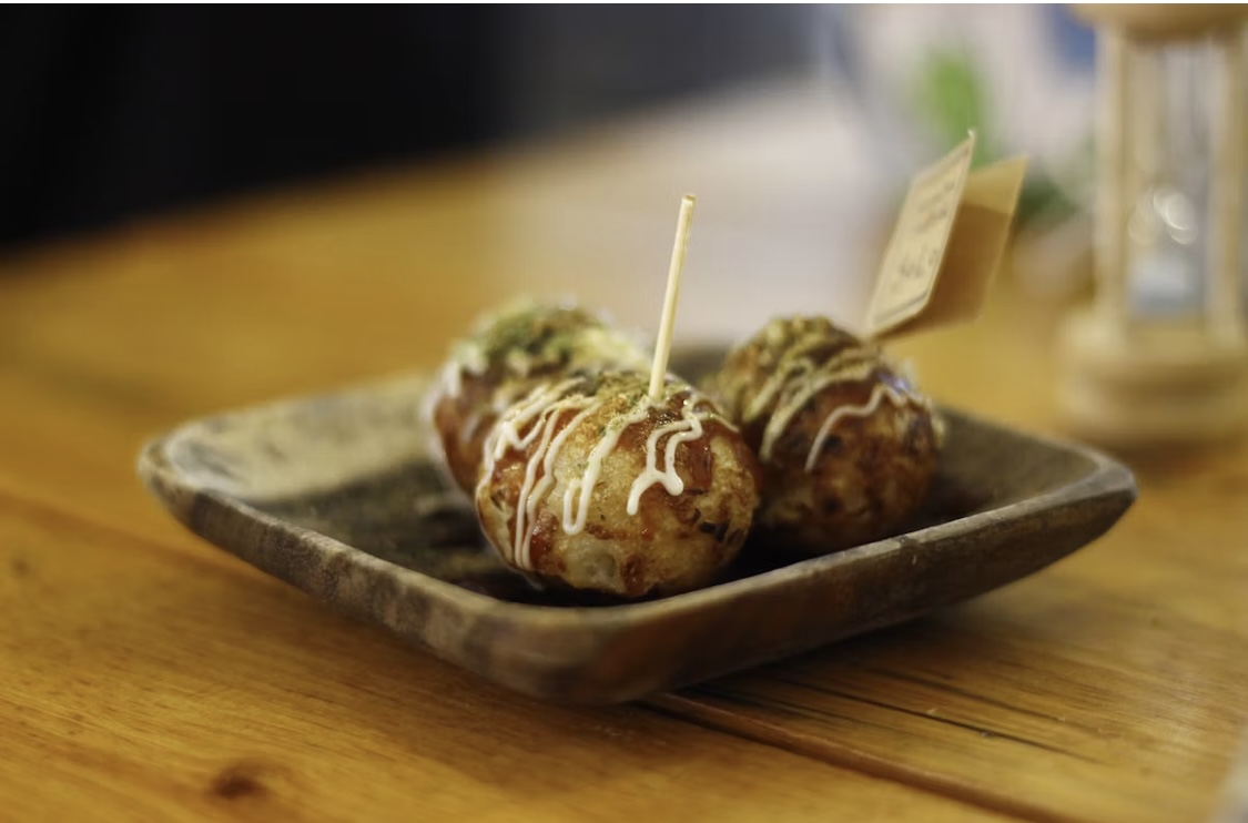 거리 곳곳에서 **타코야키 굽는 냄새**가